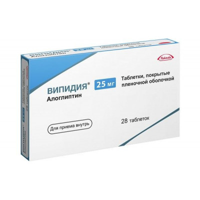 Внутрь. Рекомендуемая доза препарата Випидия® составляет 25 мг один раз в сутки в качестве монотерапии или в дополнение к метформину, тиазолидиндиону, производным сульфонилмочевины или инсулину, или в качестве трехкомпонентной комбинации с метформином, тиазолидиндионом или инсулином. Препарат Випидия® может приниматься независимо от приема пищи. Таблетки следует проглатывать целиком, не разжевывая, запивая водой.