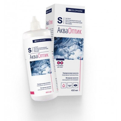 Раствор многофункциональный для ухода за контактными линзами АкваОптик (далее - раствор) представляет собой прозрачный или слегка опалесцирующий бесцветный раствор. Область применения – офтальмология (по назначению). Раствор предназначен для ежедневного ухода за всеми типами контактных линз и обеспечивает очистку, удаление протеиновых отложений, промывание, дезинфекцию, хранение контактных линз для длительного комфортного ношения. Раствор подходит для особо чувствительных глаз